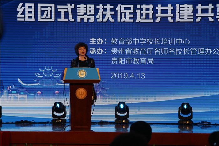 最后,教育部中学校长培训中心主任、华东师范大学教授、博士、博士生导师代蕊华作总结发言,充分肯定了贵州省“组团式帮扶”工作有谋划、有行动、有成效、有思考,强调在今后的“组团式帮扶”工作中要处理好“输血与造血”、“当下与长远”、“帮扶教育与教育帮扶”、“经验提升与模式创新”的关系,做到立足教育治理现代化、立足建设特色教育强省和立足共建共享共同发展,为更快更好地推进特色教育强省战略作出贡献。