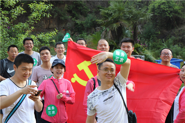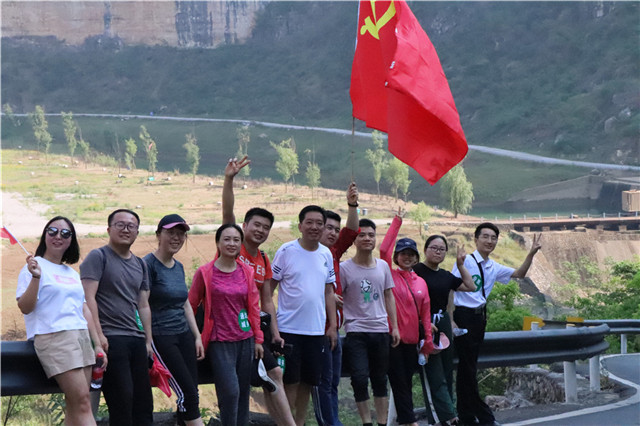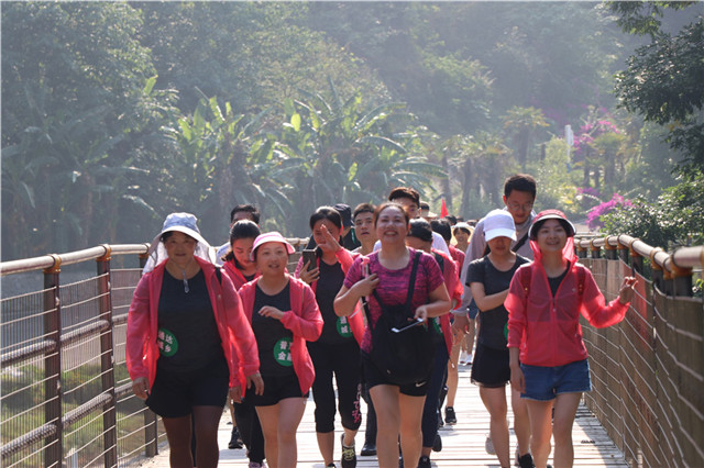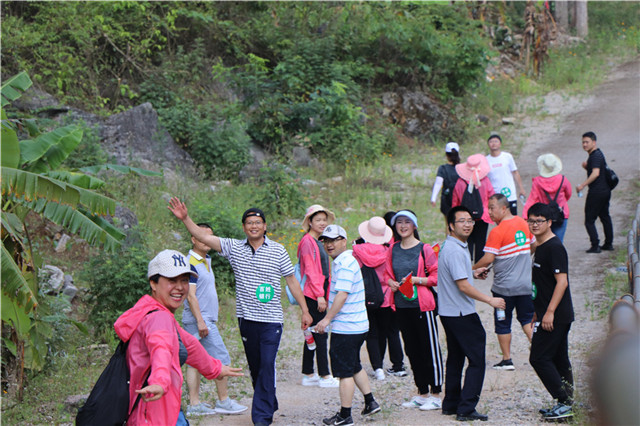 山花似火,碧水蓝天。五月的笃山攀岩公园风情万种。此次户外拓展主要以徒步为主,参与活动的员工分作“百姓银行”、“通达城乡”、“服务三农”、“普惠金融”四个小队,在主持人的带领下做了系列热身运动,整点行装,大家从停车场出发,首先映入眼帘的便是一段钢铁栈道。初夏的阳光铺满崎岖的山道,蜿蜒的队伍伴着阵阵欢笑在清风里肆意飘荡。拾级而上,崖壁旁陡峭的山路如何也抵挡不了大家满腔的热情,那种“山登绝顶我为峰”的豪情,尽显新时代农信人的风范。及至山顶停车场,大家齐聚一堂,一张张红扑扑的脸蛋儿上漾开了自豪的笑靥。
